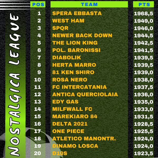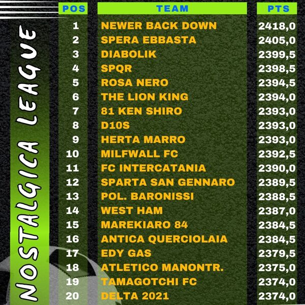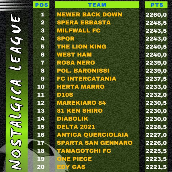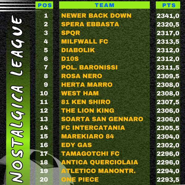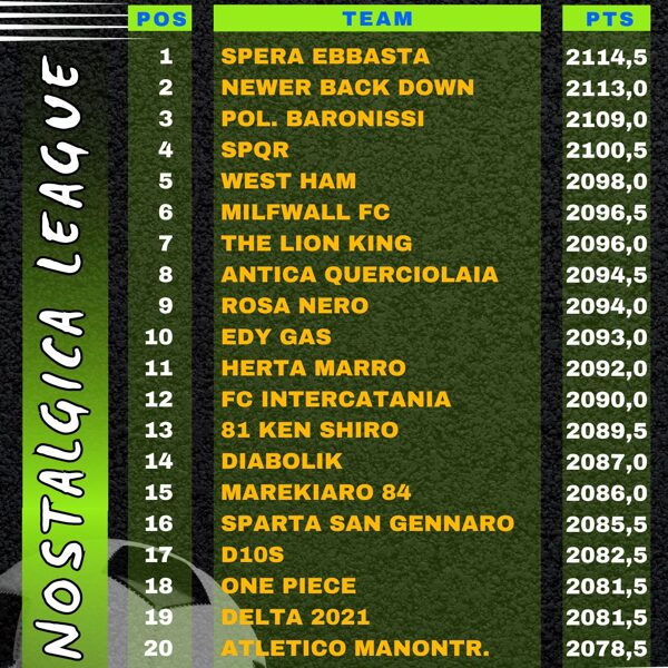 In questo spazio troverete tutti i risultati del format LISTONE.