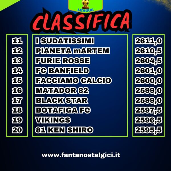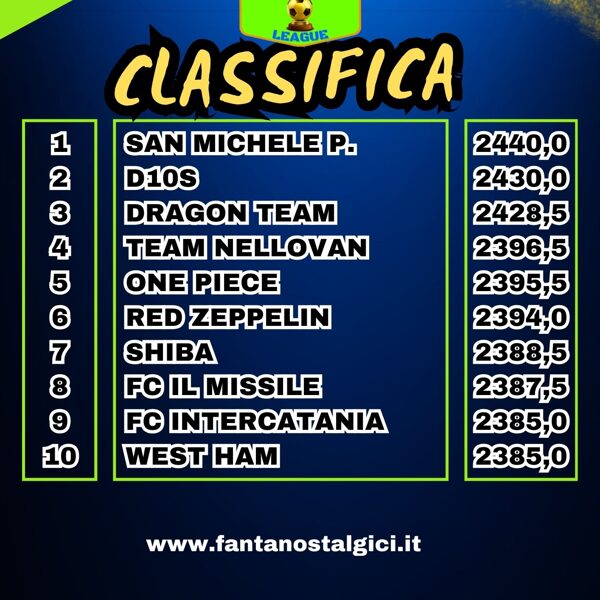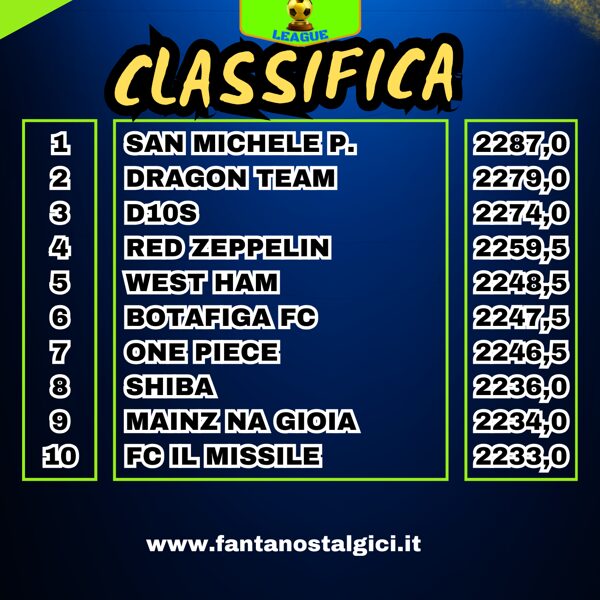 In questo spazio troverete tutti i risultati del format LISTONE.