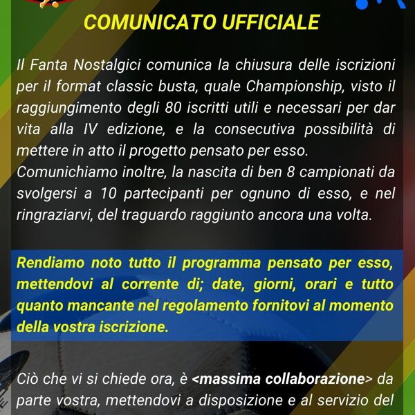REGOLAMENTO STAGIONE 25/26 FORMAT CLASSIC BUSTA CHIUSA